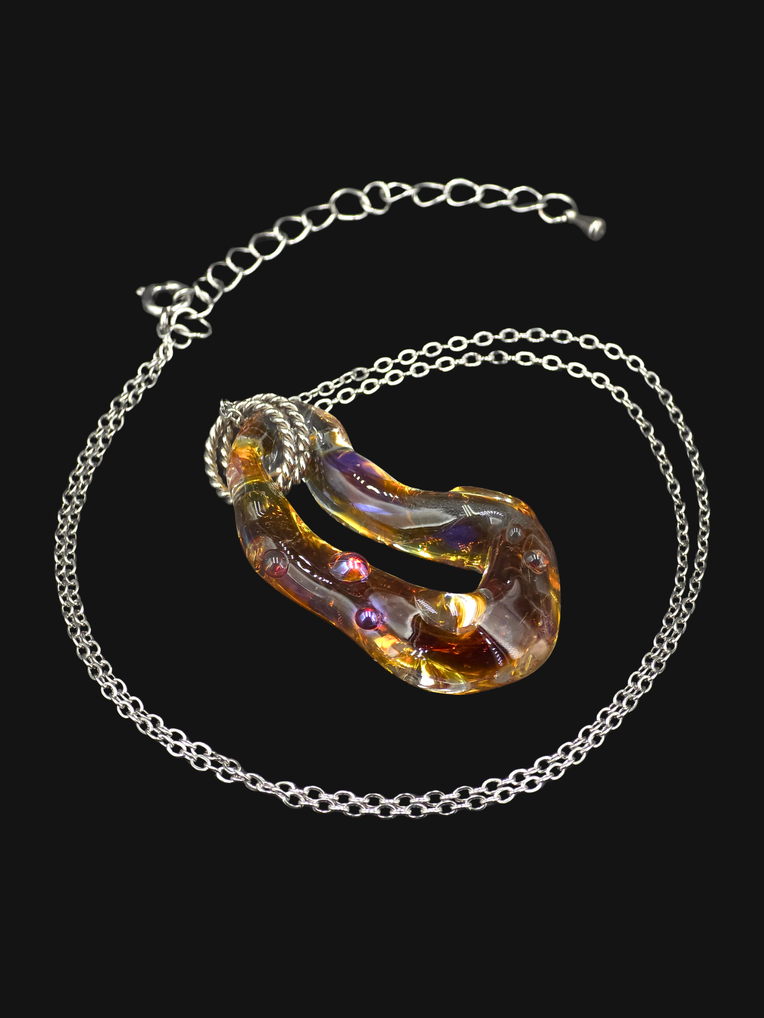 Collier en verre sodocalcique, filé au chalumeau par mes soins dans mon atelier.