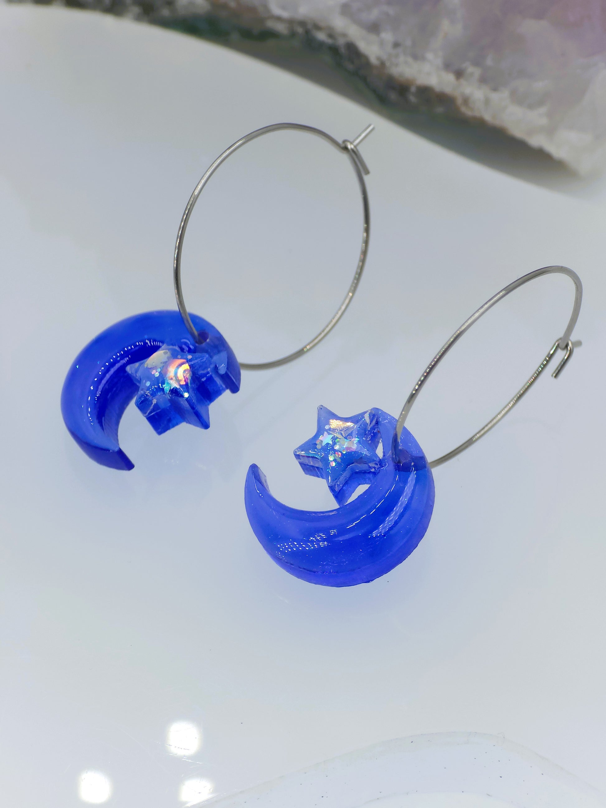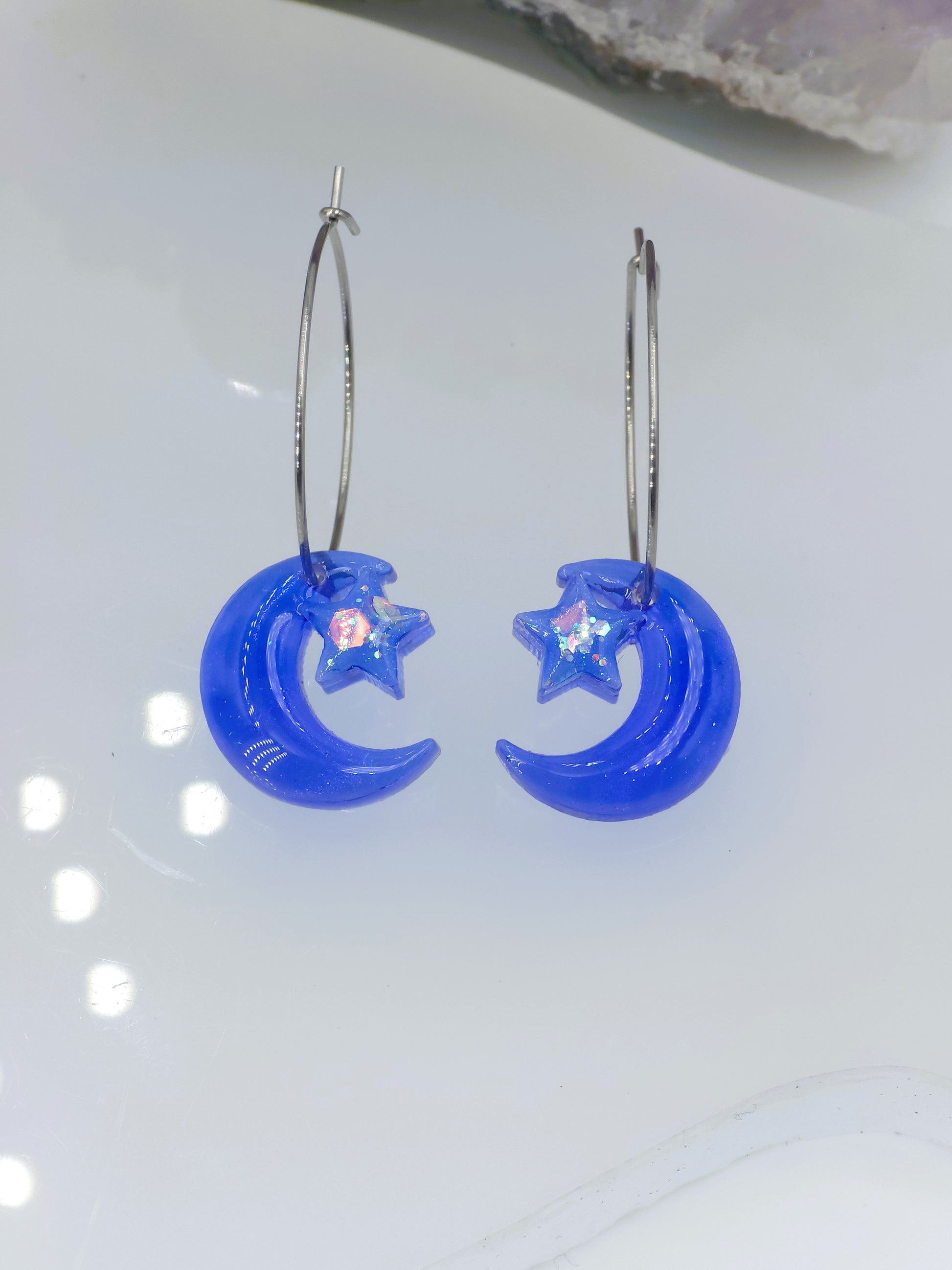 Boucles d’oreilles en résine et acier inoxydable réalisées à la main.