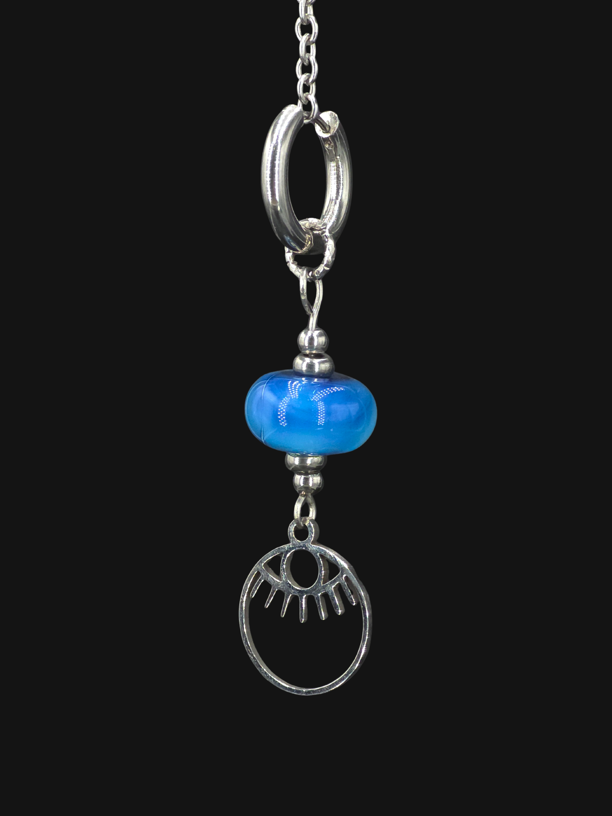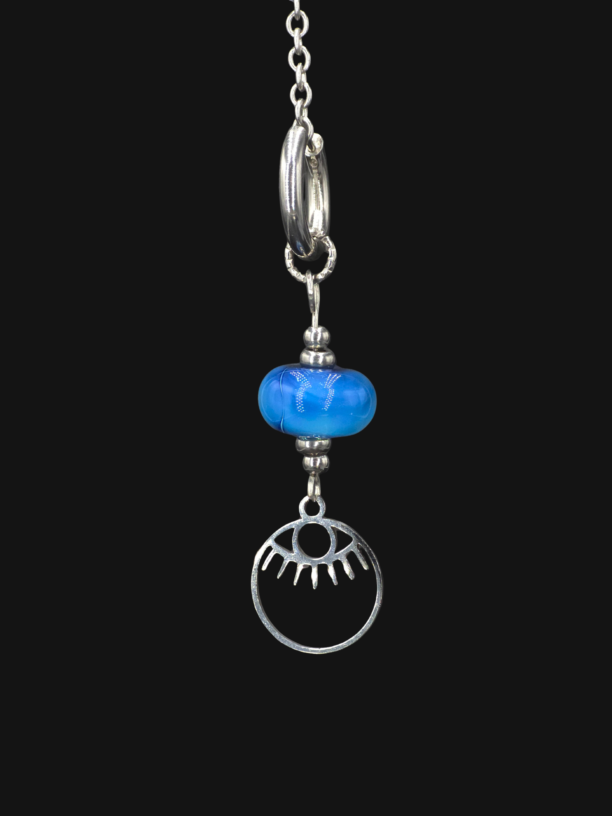 Boucle d'oreille en verre sodocalcique à l'argent filé au chalumeau par mes soins dans mon atelier.