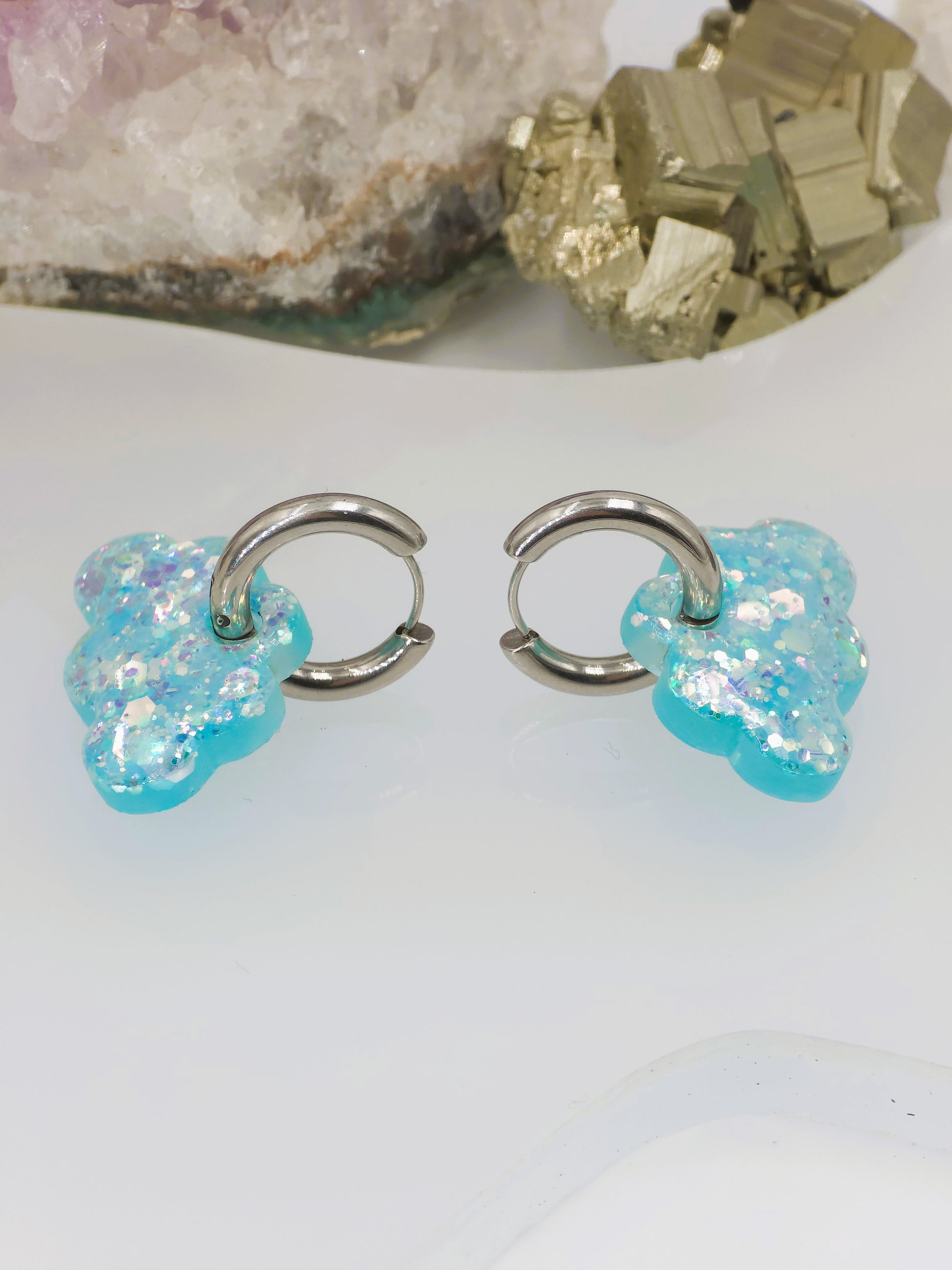 Boucles d’oreilles en résine et acier inoxydable réalisées à la main.