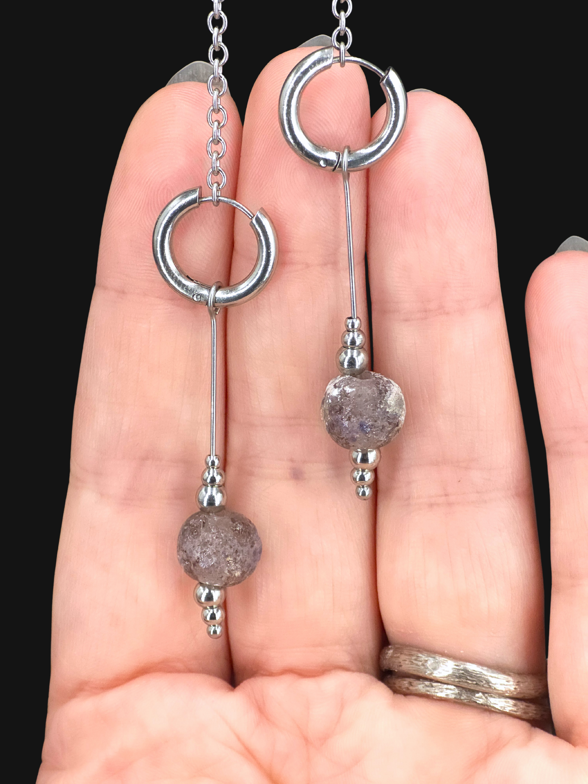 Boucles d'oreilles en verre sodocalcique filé au chalumeau par mes soins dans mon atelier.
